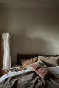 Confeccionada en terciopelo de algodón, presenta un diseño acolchado que aporta textura y volumen, realzando sofás, butacas o camas con un aire sofisticado y acogedor.