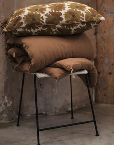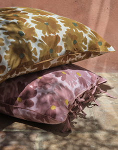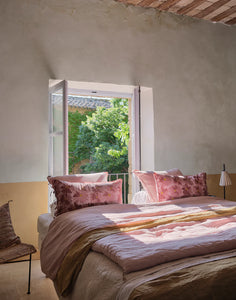 Perfecta para colocar como cojín de cama, complementa a la perfección juegos de lino lavado, aportando textura, armonía y un toque floral refinado a tu ropa de cama. Una pieza imprescindible para proyectos de interiorismo que valoran la poesía de los detalles.