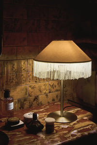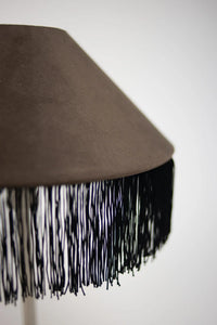 Su pantalla con flecos elegantes aporta un aire sofisticado y atrevido, mientras que la base metálica aporta ligereza y estabilidad.