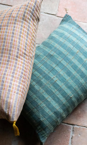 El Plaid Mukhír es una caricia cálida y envolvente. Confeccionado en una mezcla suave de lana merino y mohair, su textura esponjosa y su dibujo de cuadros difuminados lo convierten en un imprescindible para aportar confort y estilo natural a cualquier espacio.