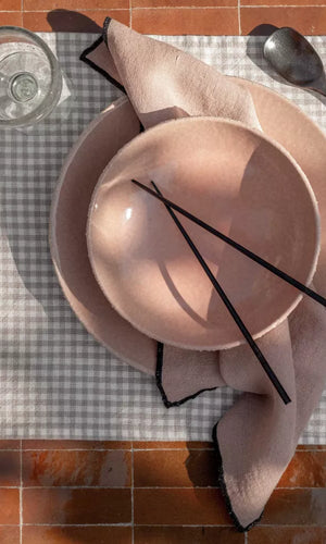 El mantel Piana está confeccionado en una mezcla de lino y algodón que combina la suavidad del algodón con la textura y caída del lino lavado. Su clásico estampado de cuadros vichy evoca el encanto de las cocinas de verano y las comidas compartidas, aportando un aire rústico, atemporal y acogedor a cualquier mesa.