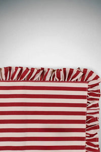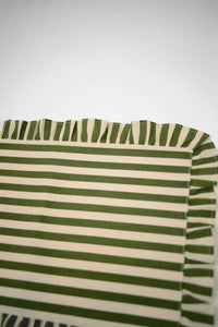 Su estampado de rayas y el borde con volante decorativo lo convierten en una pieza especial: mezcla de frescura, elegancia y un toque acogedor.