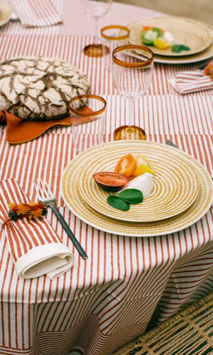 El plato de servir Almo es un homenaje al sol, al Mediterráneo y a los momentos compartidos alrededor de una mesa llena de vida. Cada pieza de esta vajilla decorativa está pintada a mano sobre loza, con un diseño radiante que fusiona tonos terracota y dorados para aportar energía, luz y alegría a cualquier comida.