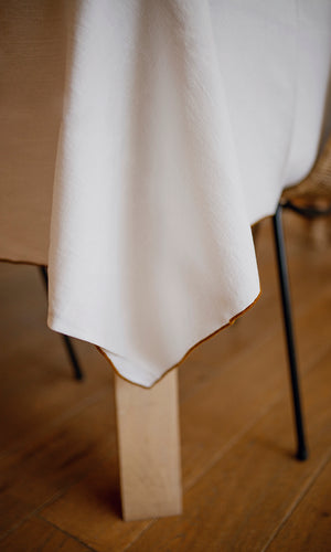 Napkins made of linen and cotton (52%/48%) finished with a bourdon-style border. They add a subtle contrast to the table, combining elegance and naturalness in a single gesture.